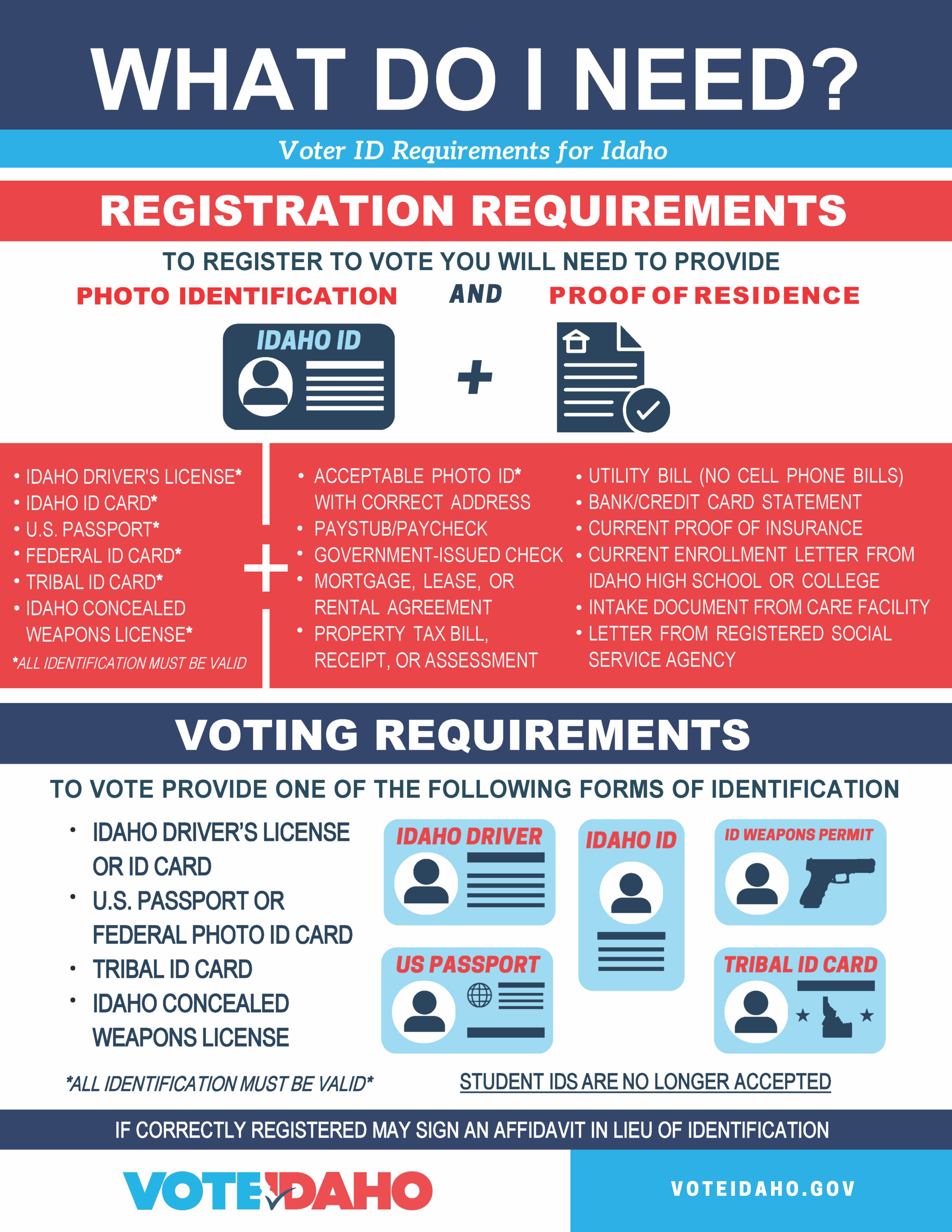 If you have questions concerning registration, absentee ballots, or accessible voting, our Elections Department is available at 208-799-3020.